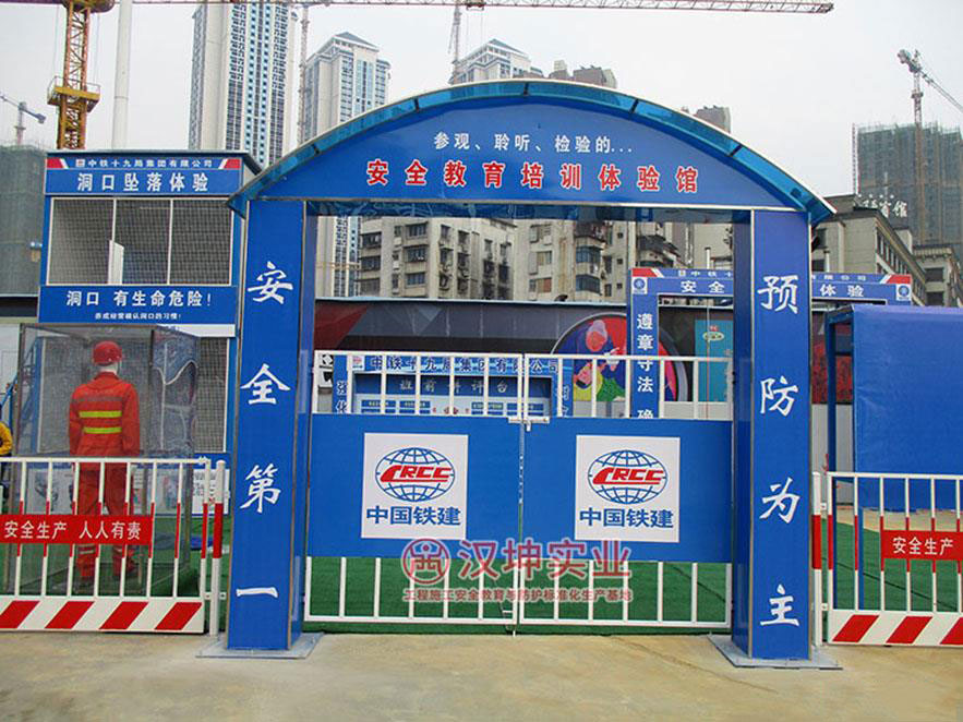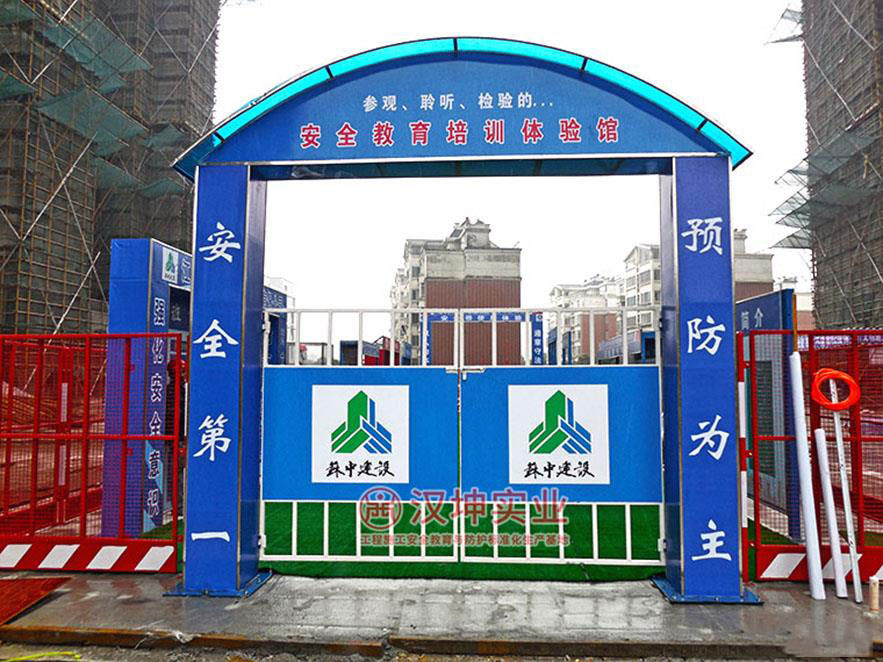 拱形门整体简洁美观,充分体现了绿色文明施工;门柱上的标语营造了轻松和谐而不失庄严的安全氛围;门顶处采用阳光板覆盖,而阳光板的材质轻、抗冲击力大、高透光性、夏天保凉冬天保温等优点展示了项目施工过程中以“以人文本、安全第一”的安全生产理念。