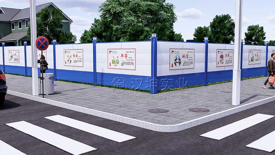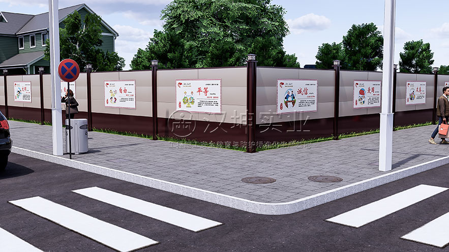 4、全自动高温烤漆,颜色鲜艳,围挡板面与现场环境搭配,可以喷不同的颜色,也可以根据客户要求选择自己心仪的图案,采用打印技术打印,(图案尺寸: 宽1米*长2米)宣传企业文化,或以社会主义核心展开,美化城市环境,尺寸可按客户需求定制;
