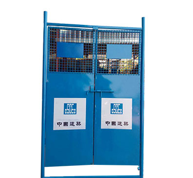 汉坤人货电梯防护门全铁板上下冲孔,带角钢架管,制作工艺精细,外框方管采用45度角焊接,牢固稳定;人性化设计。
