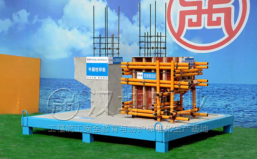 展示区:钢筋绑扎,模板加固,双钢管固定,双螺帽加固,砼成型,施工缝凿毛处理,控制线弹墨线,预埋件。
