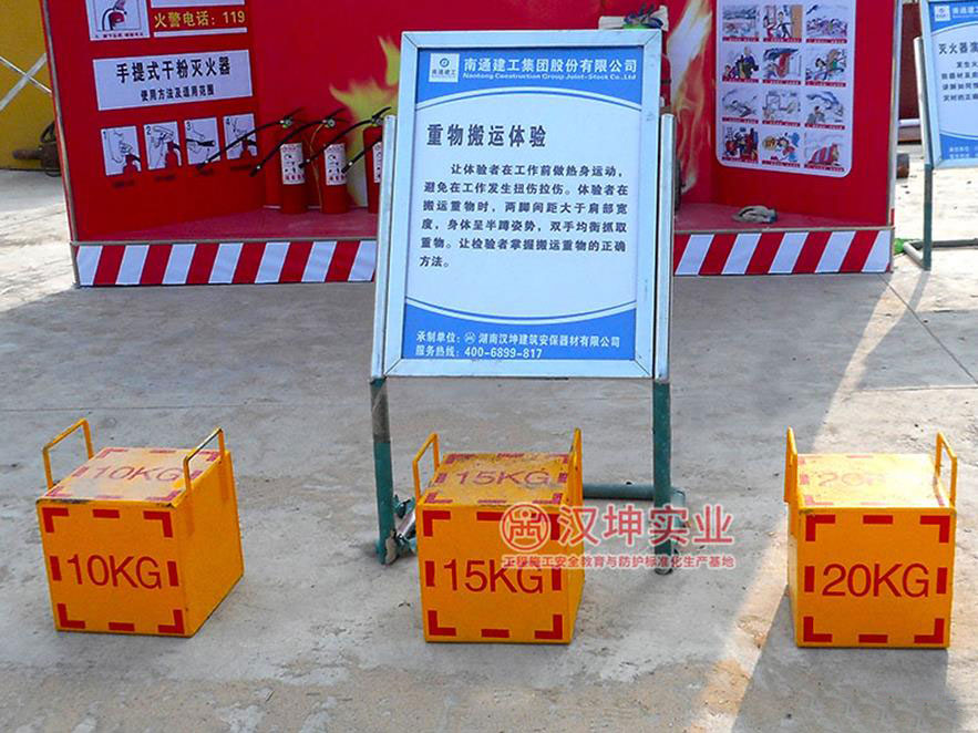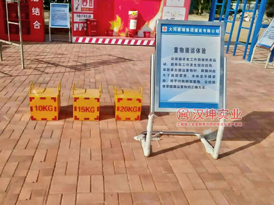 安全体验馆一般配置安全帽撞击体验、安全用电体验、安全防护用品展示体验、洞口坠落体验、安全带使用体验、现场急救体验、墙体倾倒体验、灭火器演示体验、栏杆倾倒体验、安全鞋撞击体验、吊运体验、安全讲平台、钢丝绳使用体验、重物搬运体验、平衡木体验、平衡桥体验等数十种安全体验设施。