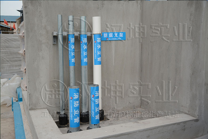 质量样板展示区-水井电井预埋样板展示:给水、排水、消防、防水封堵,地漏。强弱电桥架,防腐..
