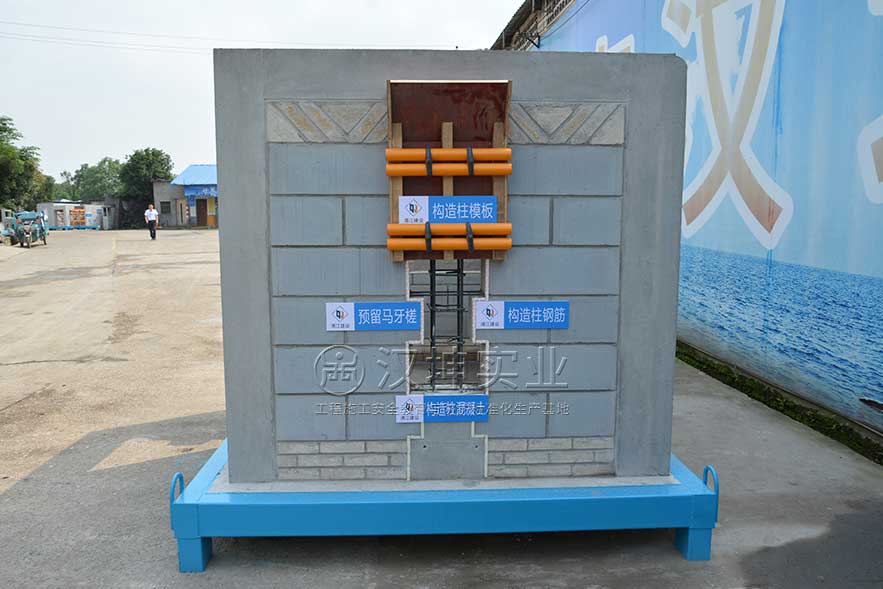 内外墙砌体加气块,门框柱,窗洞口预制实心砖,导墙三皮灰沙砖打底,砼过梁,窗台梁,构造柱支模,钢筋,砼,簸箕口,马牙搓,斜顶转。