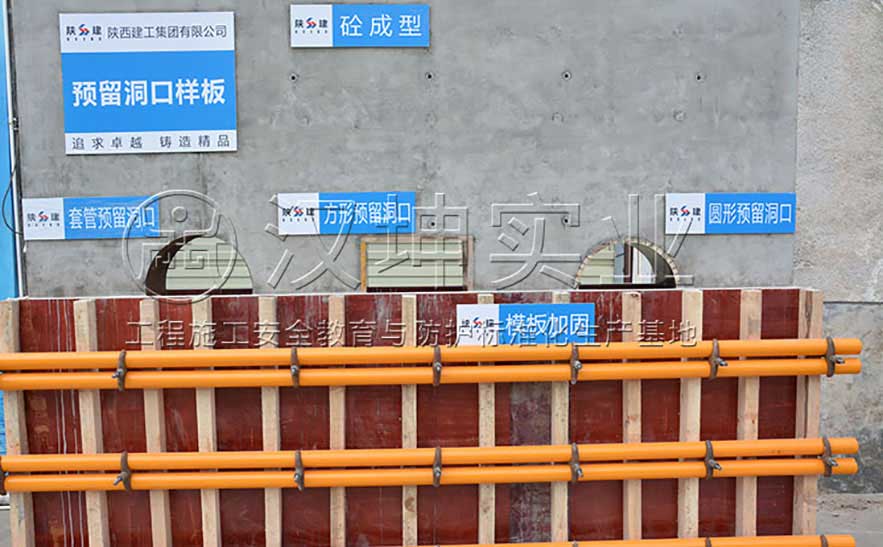 质量样板展示区-预留洞口样板展示:方形预留洞口,圆形预留洞口,套管预留洞口,模板加固,砼成型 。