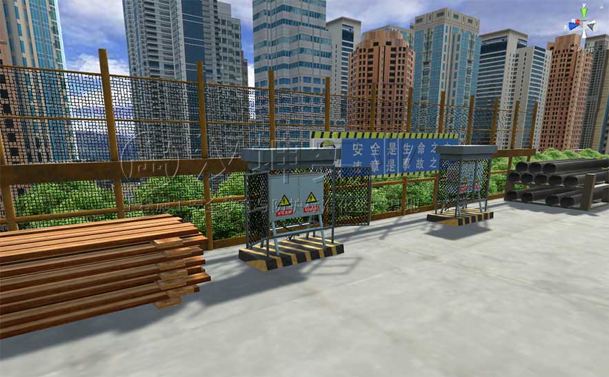 工人戴上头盔,手持VR手柄,通过vr眼睛可以看到自己漫游在工地施工场景中。VR工地安全体验馆把建筑工地的实景转换到虚拟场景中,想象一下,如同看3D-IMAX电影一样,工人戴上VR眼镜后,仿佛身临其境,整个工程形象逼真地展示在眼前,似乎触手可及,就能在虚拟环境中体验被工地钓机绊倒、在材料堆里吸烟引发火灾、高空作业不慎掉落等险情。可以通过虚拟场景模拟,有效避免施工时的安全事故。